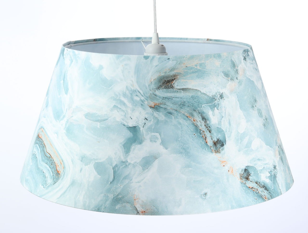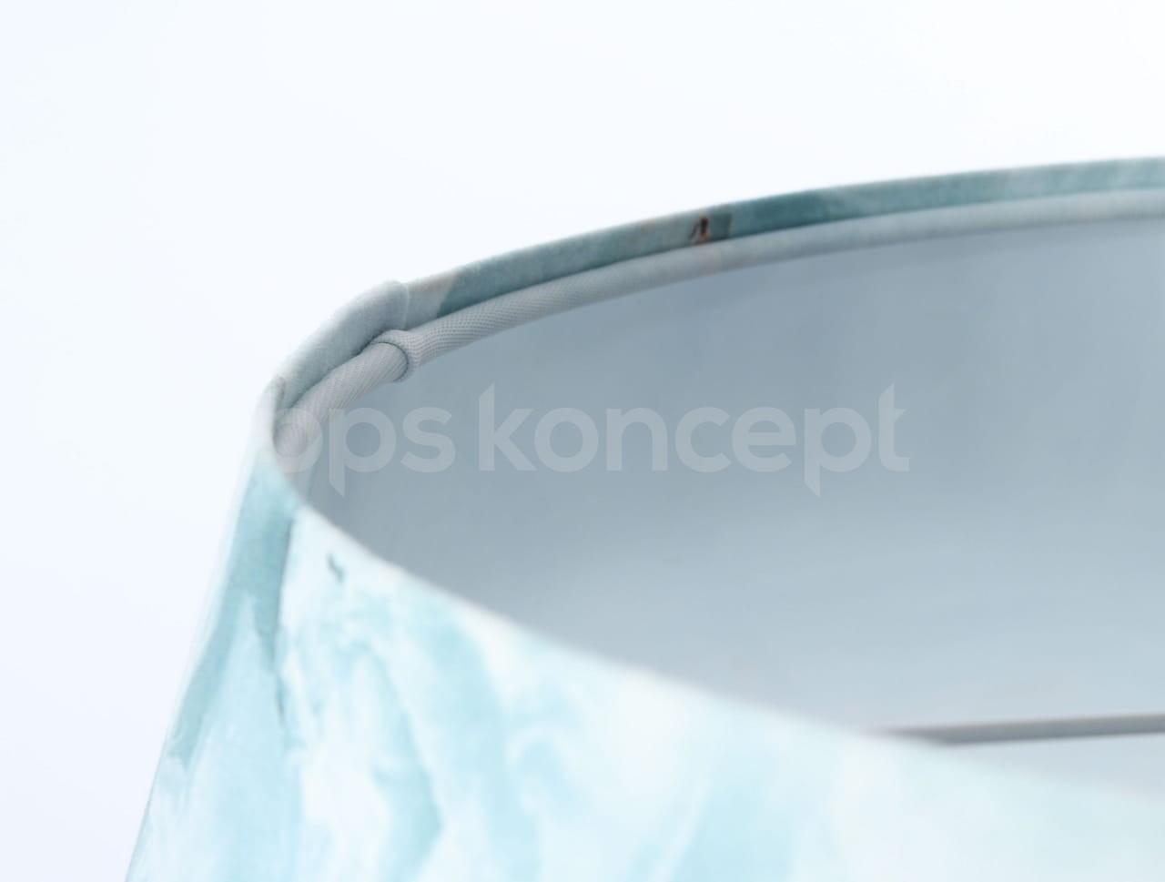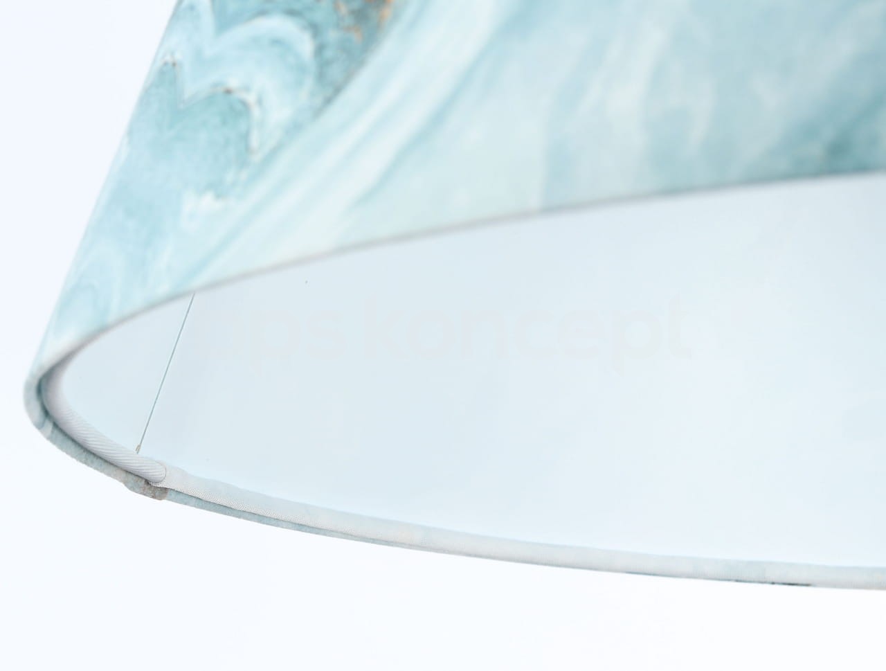 wykonana jest z tkaniny welurowej z pięknym ornamentem. Wnętrze abażura to biała apla. Lampa idealnie rozświetli każde pomieszczenie. Abażur jest odporny na działania promieni UV, tkanina nie ulega blaknięciu w trakcie użytkowania. Lampa wyprodukowana jest ręcznie. Jest to w całości polska produkcja.