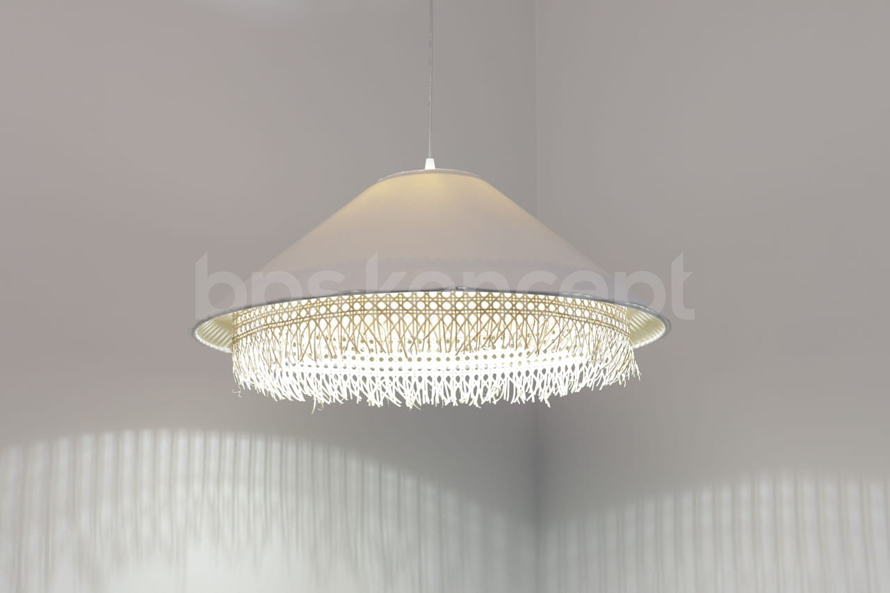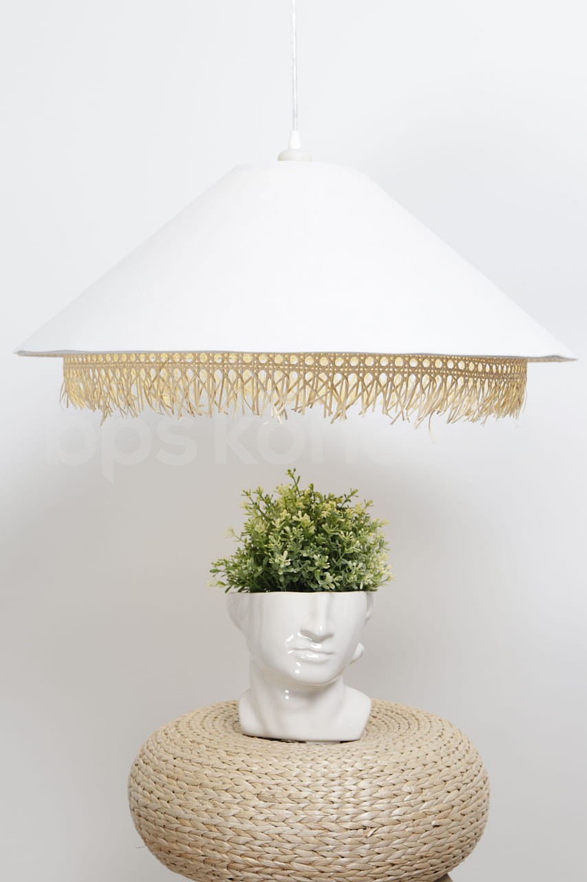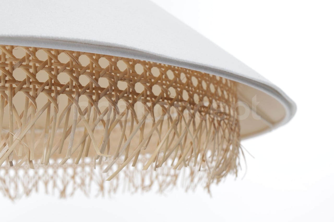 to finezyjne połączenie różnorodnych materiałów, takich jak rattan, juta, satyna i aksamit, z odważnymi i mocnymi kolorami. Lampy te będą idealnie pasować do każdego rodzaju wnętrz, subtelnie je podkreślając, lub stanowiąc osobny akcent. Dzięki dużej liczbie materiałów i kształtów, można stworzyć nieskończenie wiele spersonalizowanych i oryginalnych kombinacji. Kolekcja składa się z różnego rodzaju stożków w wielu proporcjach oraz kombinacjach, bardzo ładnych dla oka. Materiał, z którego lampy są wykonane, jest bardzo wysokiej jakości oraz tym samym bardzo łatwy w utrzymaniu. Abażur jest odporny na działania promieni UV, tkanina nie ulega blaknięciu w trakcie użytkowania. Lampa wyprodukowana jest ręcznie przez nasz wspaniały zespół. Jest to w całości polska produkcja.