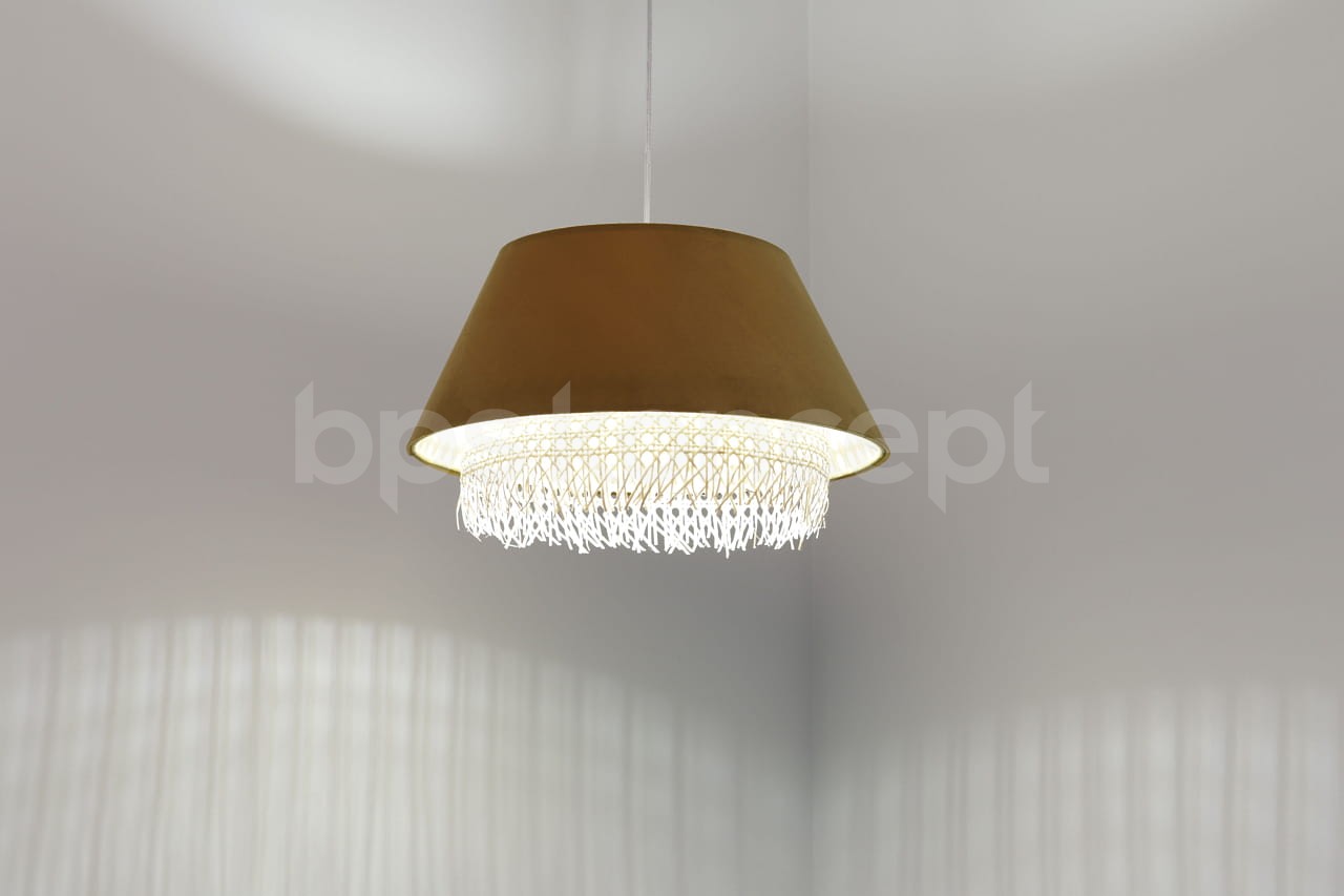 to finezyjne połączenie różnorodnych materiałów, takich jak rattan, juta, satyna i aksamit, z odważnymi i mocnymi kolorami. Lampy te będą idealnie pasować do każdego rodzaju wnętrz, subtelnie je podkreślając, lub stanowiąc osobny akcent. Dzięki dużej liczbie materiałów i kształtów, można stworzyć nieskończenie wiele spersonalizowanych i oryginalnych kombinacji. Kolekcja składa się z różnego rodzaju stożków w wielu proporcjach oraz kombinacjach, bardzo ładnych dla oka. Materiał, z którego lampy są wykonane, jest bardzo wysokiej jakości oraz tym samym bardzo łatwy w utrzymaniu. Abażur jest odporny na działania promieni UV, tkanina nie ulega blaknięciu w trakcie użytkowania. Lampa wyprodukowana jest ręcznie przez nasz wspaniały zespół. Jest to w całości polska produkcja.