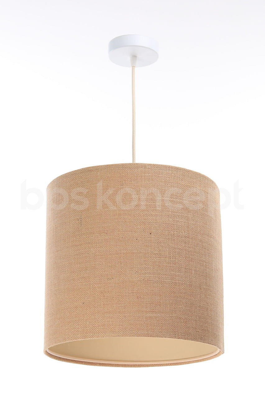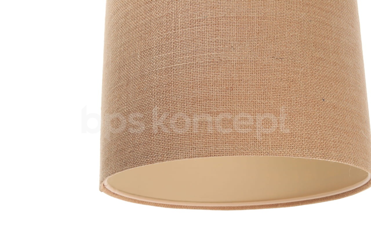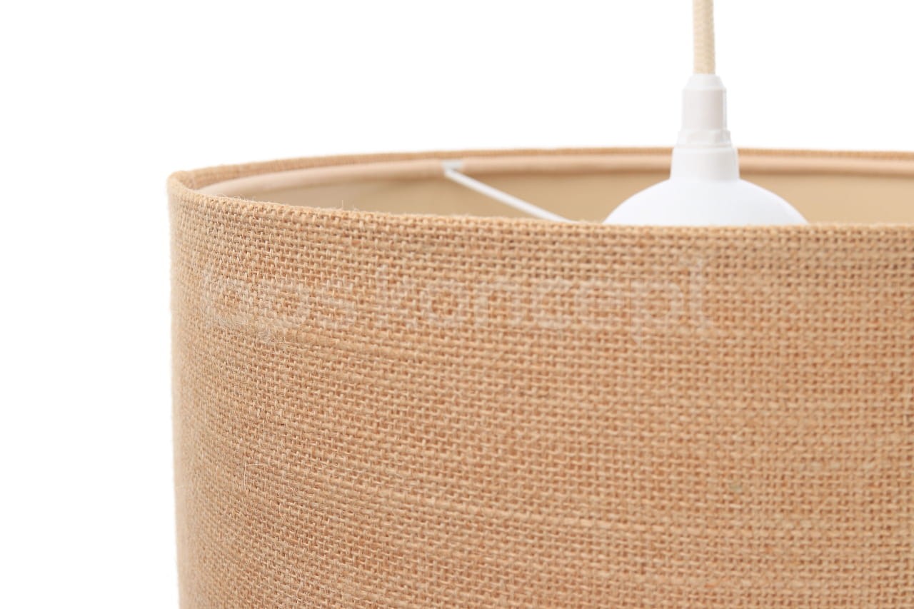 Abażur wykonany jest z naturalnej jutowej tkaniny, nałożonej na plastiku PCV z kremowo-beżowym środkiem. Lampa doda elegancji i będzie stanowić piękny akcent dopełniający każdy wystrój wnętrz. Abażur jest odporny na działania promieni UV, dlatego tkanina nie ulega blaknięciu w trakcie użytkowania. Jest to w całości polska produkcja. Lampa dostępna jest w 4 rozmiarach. Rozmiar S to średnica 30cm i wysokość 40cm. Rozmiar L to średnica 40cm i wysokość 50cm. Rozmiar XL to średnica 50cm i wysokość 60cm. Rozmiar XXL to średnica 60cm i wysokość 70cm