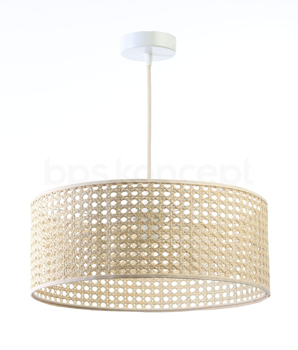 wykonane są z włókien palmy rotangowej. Mają mają bardzo lekką formę oraz piękny i naturalny kolor. Kolekcja rattanowa powstała z myślą o wnętrzach w stylu skandynawskim i boho. W trendach tych dominują meble i dodatki o stonowanych kolorach ziemi, wykonanych przez lokalnych rzemieślników przy użyciu miejscowych gatunków drewna, wiklina, bambusa, lnu, wełny czy gliny. Wszystko ma nosić znamiona pracy rąk ludzkich. I dokładnie tak też powstaje nasza rattanowa kolekcja. Stosujemy tylko naturalny rattan. Nie używamy żadnych tworzyw sztucznych. Lampa od początku do końca tworzona jest ręcznie, dzięki czemu starannie układamy rattanowy splot w strukturę lampy, dbając o każdy szczegół wykończenia. Lampa dostępna jest w 3 rozmiarach. Rozmiar podstawowy do średnica 40cm i wysokość 15cm. Rozmiar większy to średnica 50cm i wysokość 20cm. Rozmiar największy to średnica 60cm i wysokość 25cm.