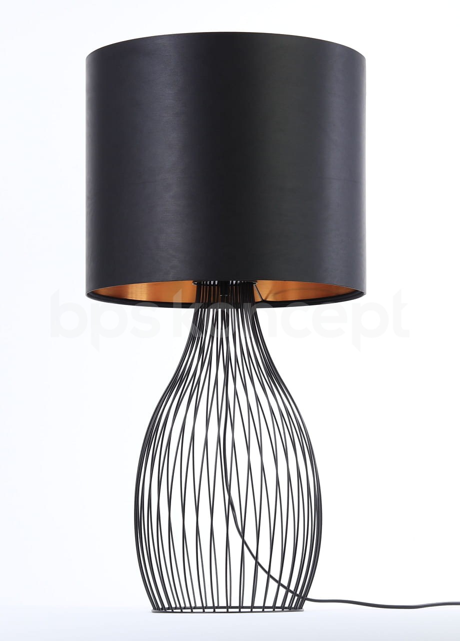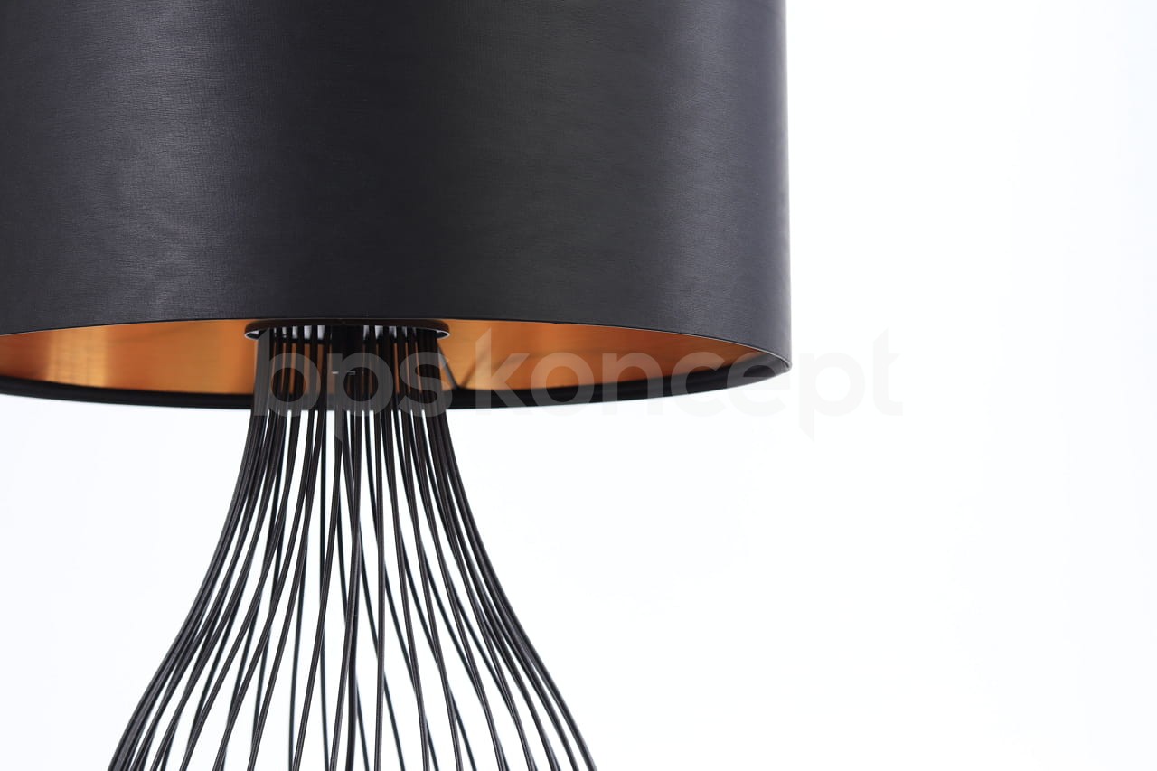 to jedna z naszych propozycji do nowoczesnych wnętrz. To połączenie industrialnej, lekkiej podstawy z oryginalnym, lateksowym abażurem. Wnętrze abażura to strukturalne złoto, które w podświetleniu daje ciepłą i przytulną poświatę. Odpowiednio dobraliśmy proporcje podstawy i abażura, by lampa stanowiła spójną całość. Jest to duża lampa, idealna by stanąć na komodzie, parapecie czy na stoliku obok kanapy.