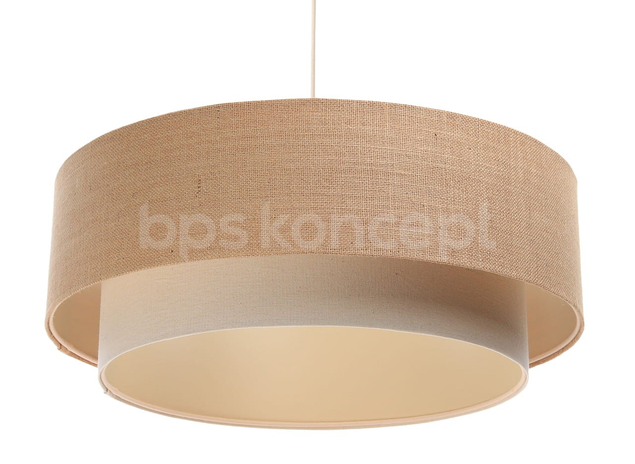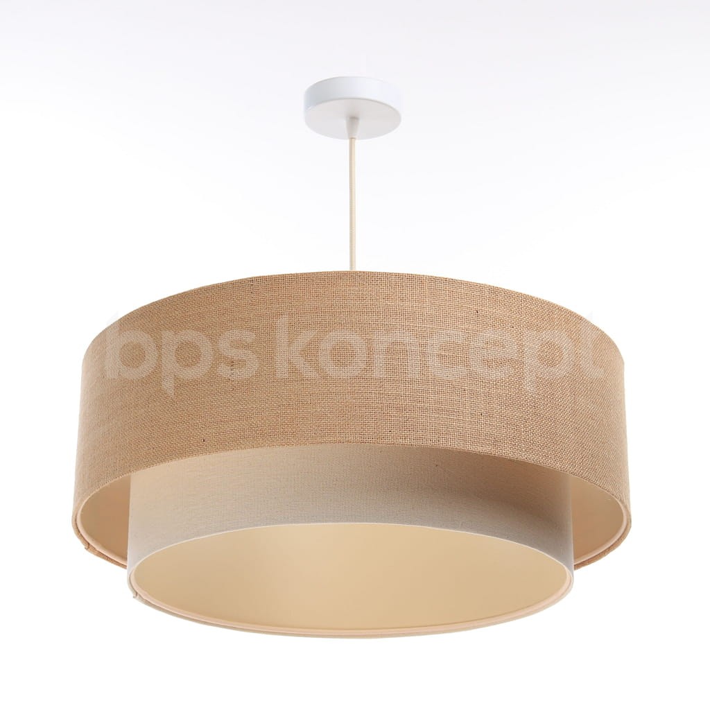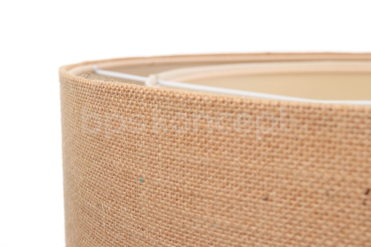 Abażur wykonany jest z naturalnej lnianej tkaniny w połączeniu z jutą, nałożone na plastiku PCV z kremowo-beżowym środkiem. Lampa doda elegancji i będzie stanowić piękny akcent dopełniający każdy wystrój wnętrz. Abażur jest odporny na działania promieni UV, dlatego tkanina nie ulega blaknięciu w trakcie użytkowania. Jest to w całości polska produkcja.
