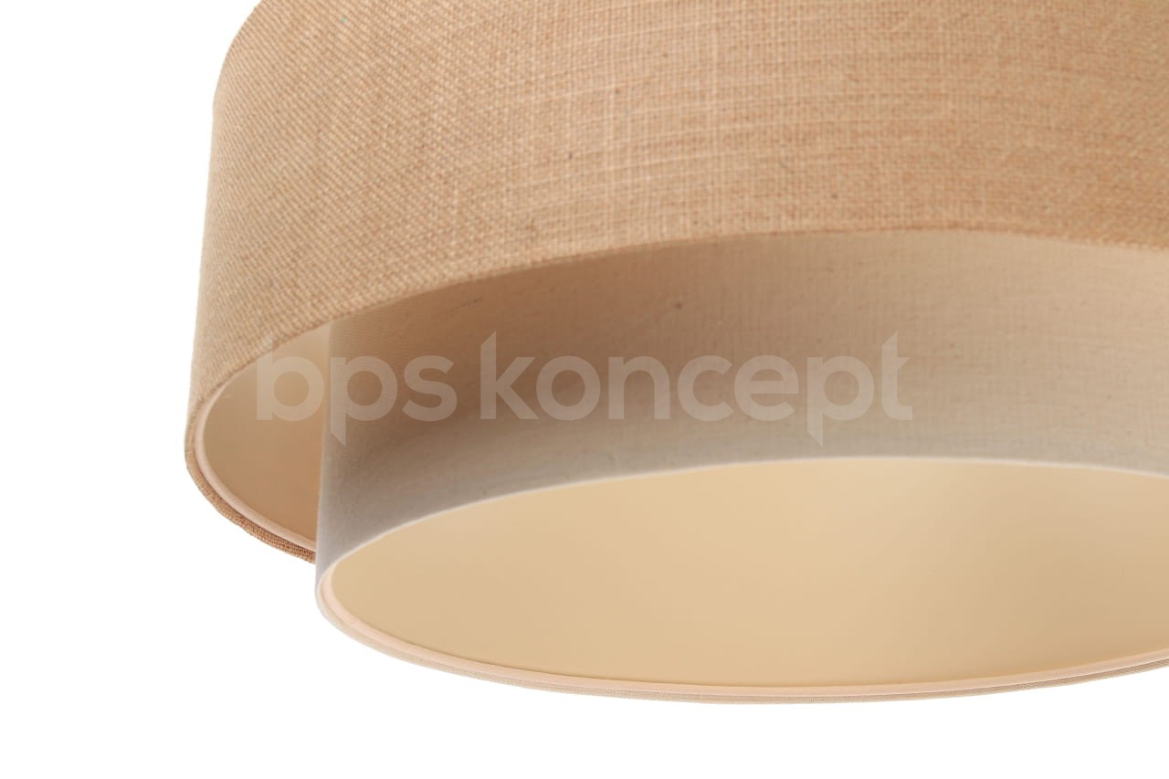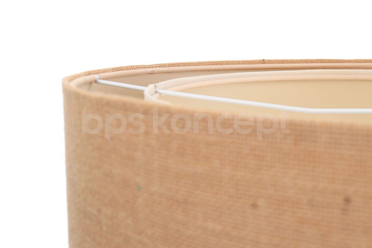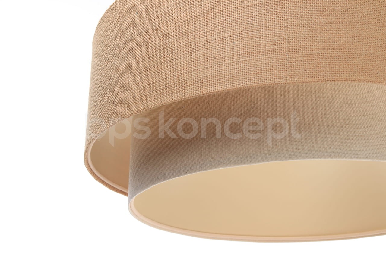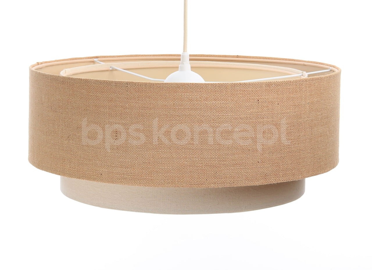 Abażur wykonany jest z naturalnej lnianej tkaniny w połączeniu z jutą, nałożone na plastiku PCV z kremowo-beżowym środkiem. Lampa doda elegancji i będzie stanowić piękny akcent dopełniający każdy wystrój wnętrz. Abażur jest odporny na działania promieni UV, dlatego tkanina nie ulega blaknięciu w trakcie użytkowania. Jest to w całości polska produkcja.