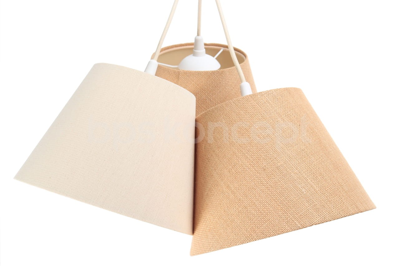 wykonana jest z tkaniny naturalnej (len i juta) w kolorze krem - beż. Wnętrze abażura to delikatna, kremowo bezowa apla, w odcieniu matowym. Lampa idealnie rozświetli każde pomieszczenie. Abażur jest odporny na działania promieni UV, tkanina nie ulega blaknięciu w trakcie użytkowania. Lampa wyprodukowana jest ręcznie. Jest to w całości polska produkcja.